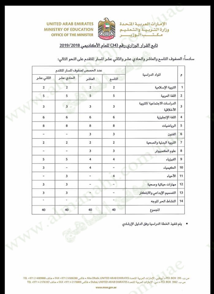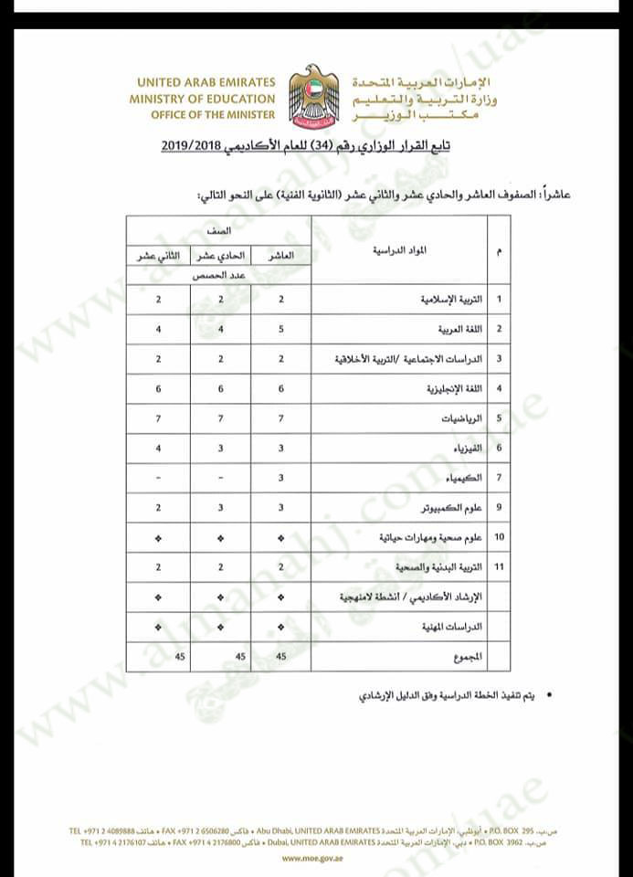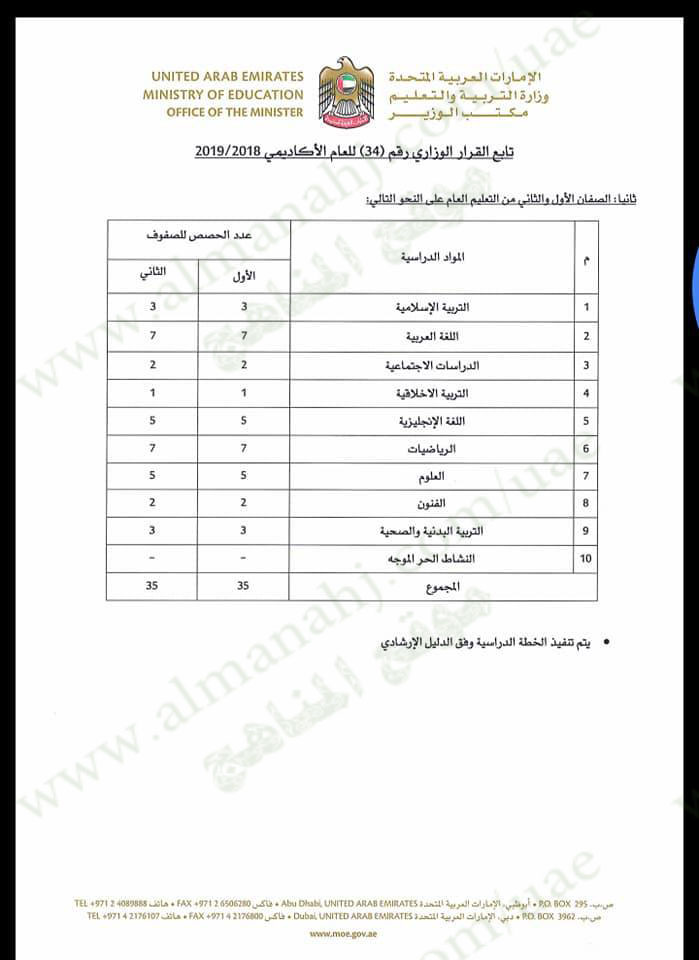 | الملاحظات المثبتة في المناهج الإماراتية | |