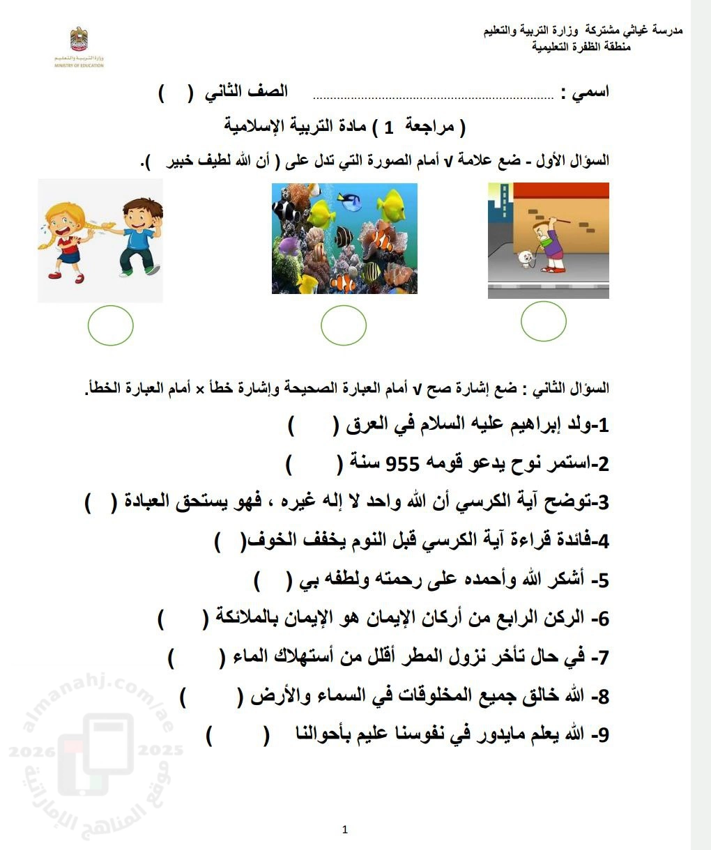 أنت هنا: موقع المناهج ⇦ المناهج الإماراتية ⇦ الصف الثاني ⇦ تربية اسلامية ⇦ الفصل الأول ⇦ أوراق عمل |