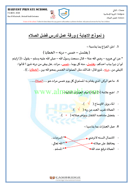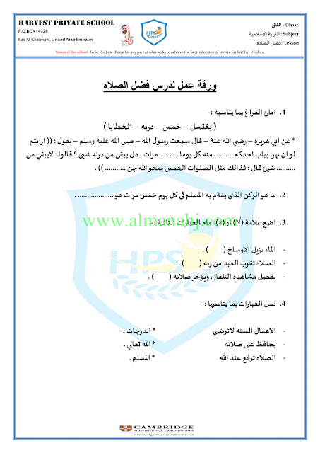 معلومات الملف: الصف الثاني, الفصل الثاني, تربية اسلامية, 2017-2018, ورقة عمل درس فضل الصلاة | |||