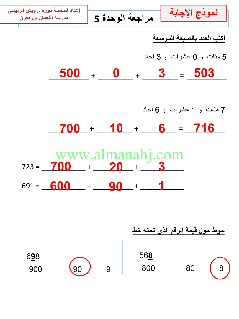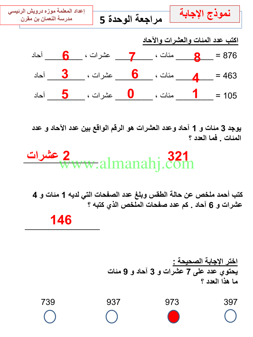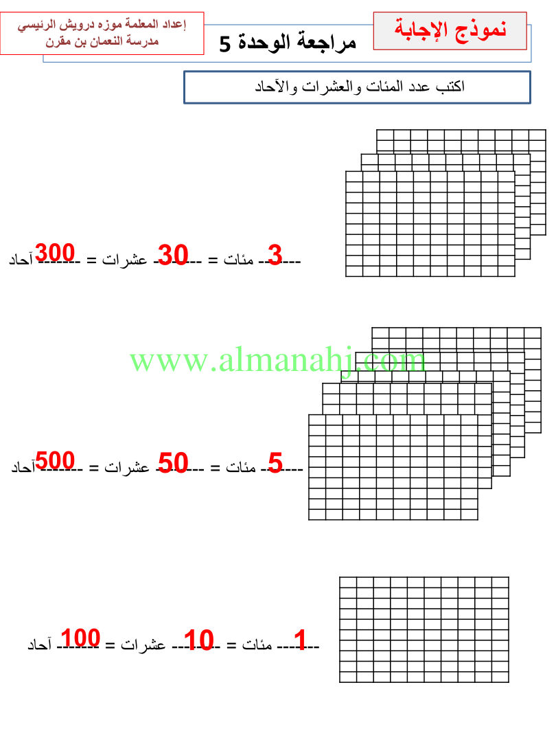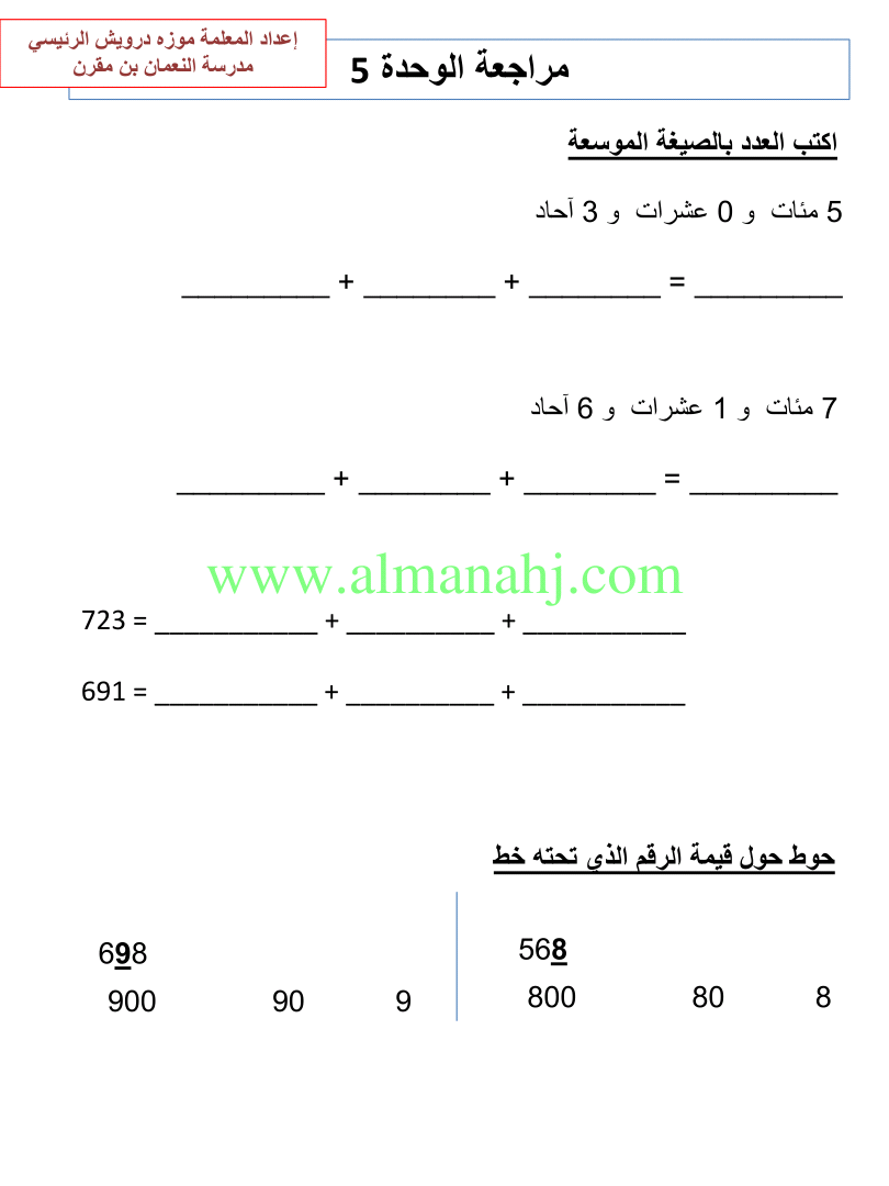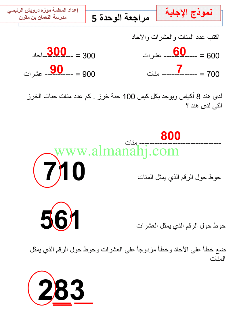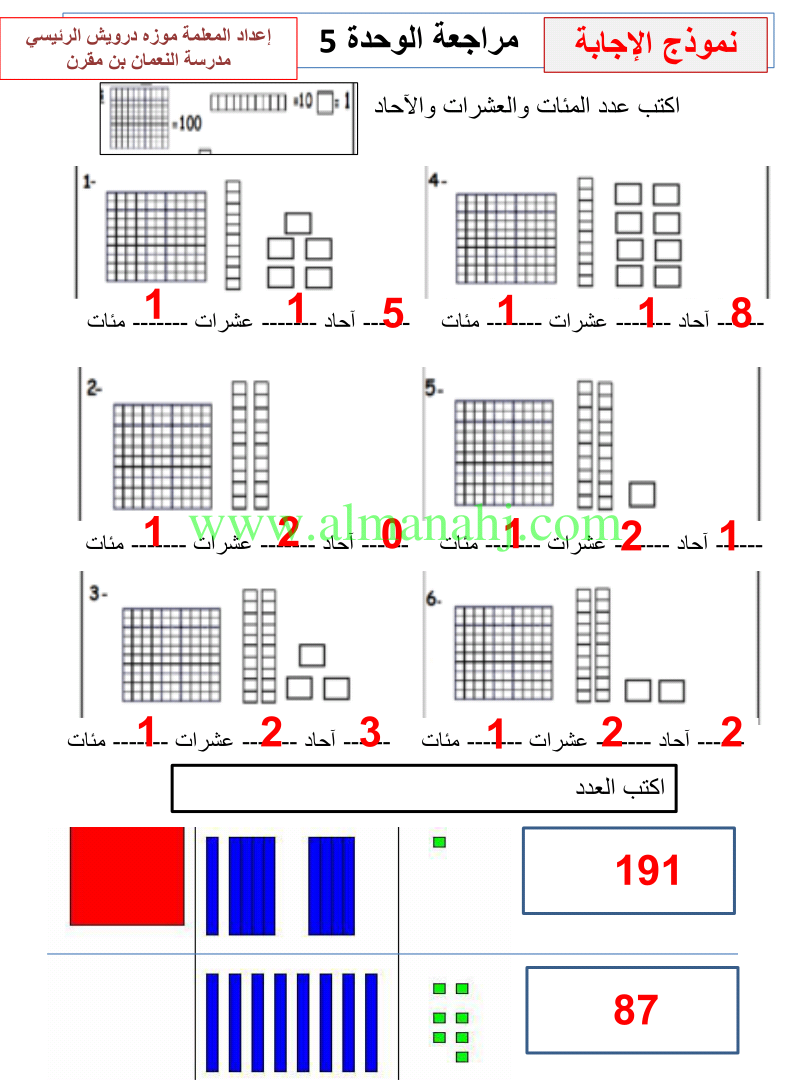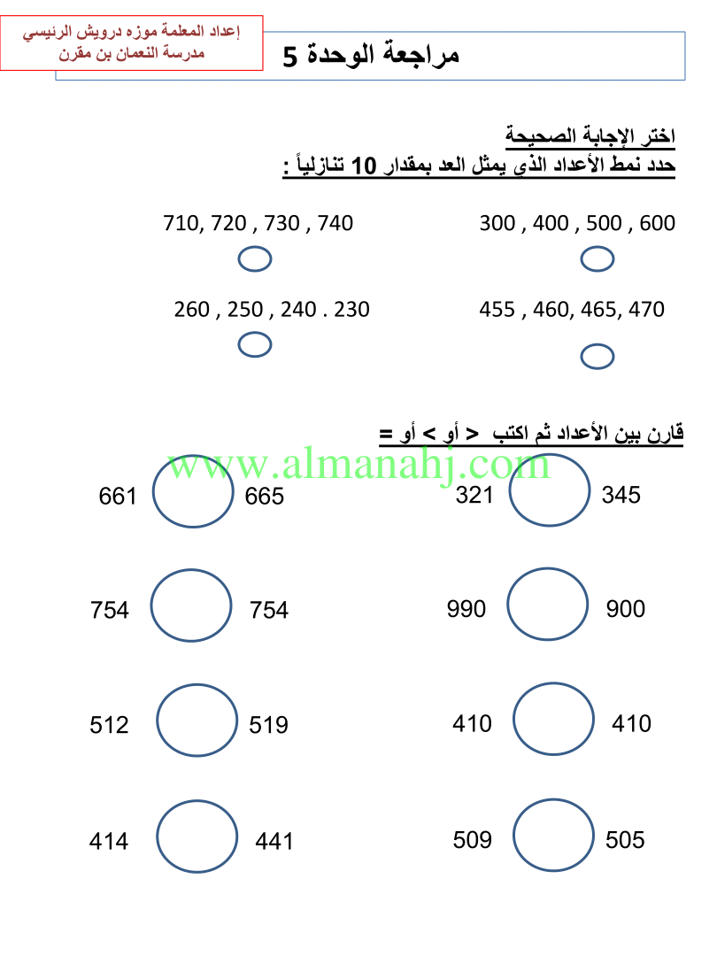 معلومات الملف: الصف الثاني, الفصل الثاني, رياضيات, 2017-2018, مراجعة الوحدات الخامسة والسادسة والسابعة | |||