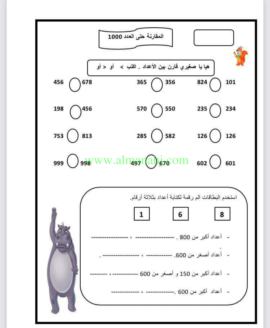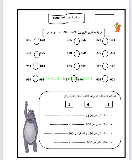 معلومات الملف: الصف الثاني, الفصل الثاني, رياضيات, 2017-2018, المقارنة حتى العدد1000 | |||