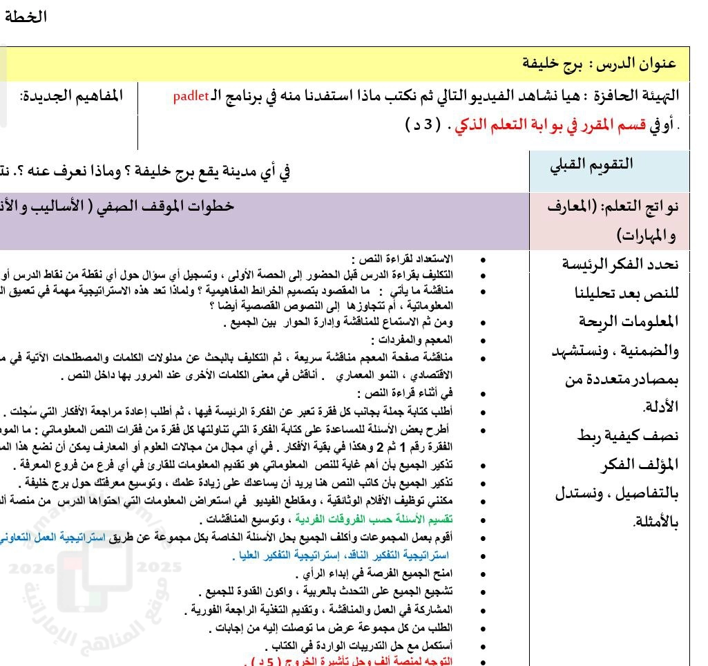 | 📌 الخطة الدراسية الرسمية المعتمدة للعام الدراسي 2025-2026 | |