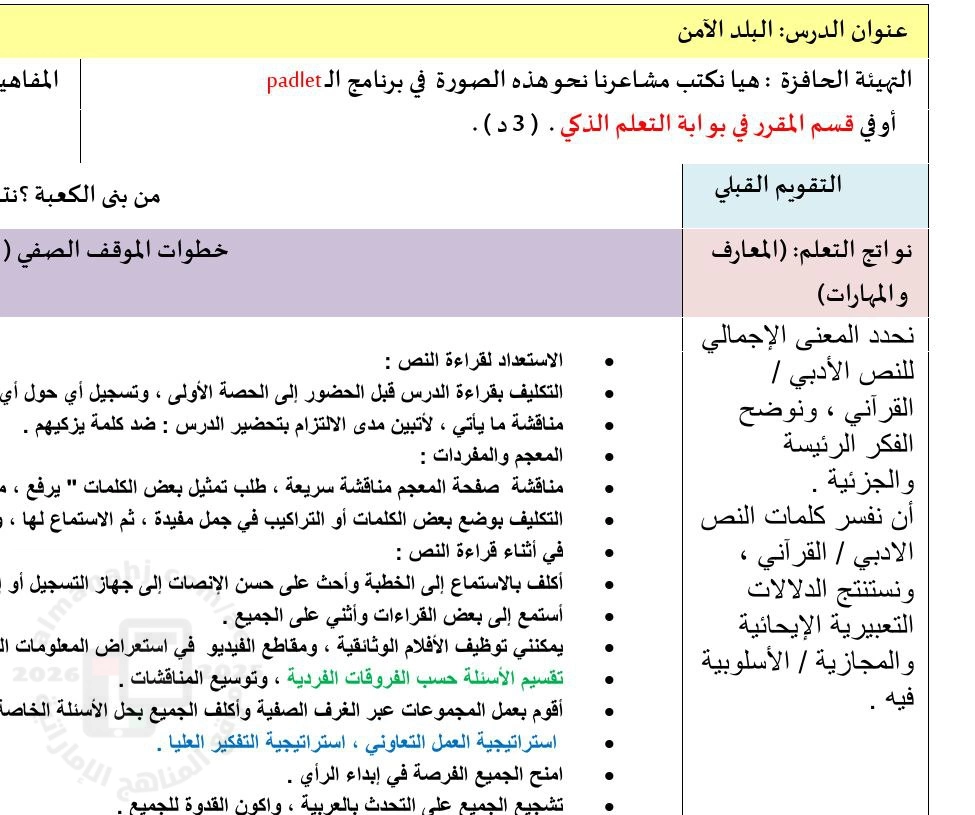 تحضير درس البلد الآمن - إعداد: عائشة الظاهري | ||