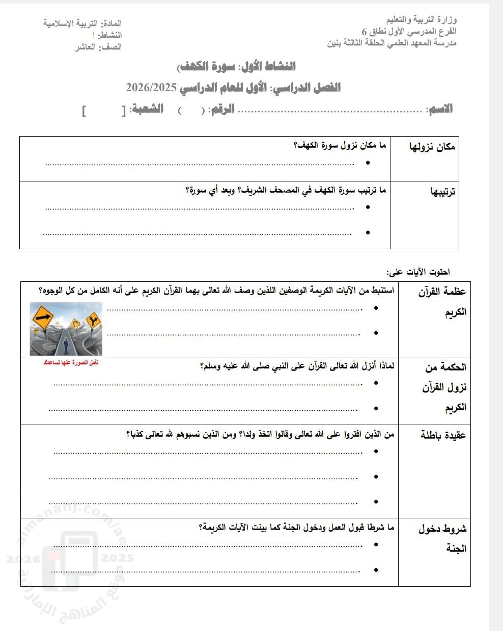 تم إيجاد الملف: ورقة عمل درس سورة الكهف