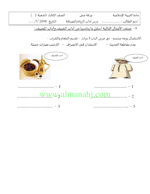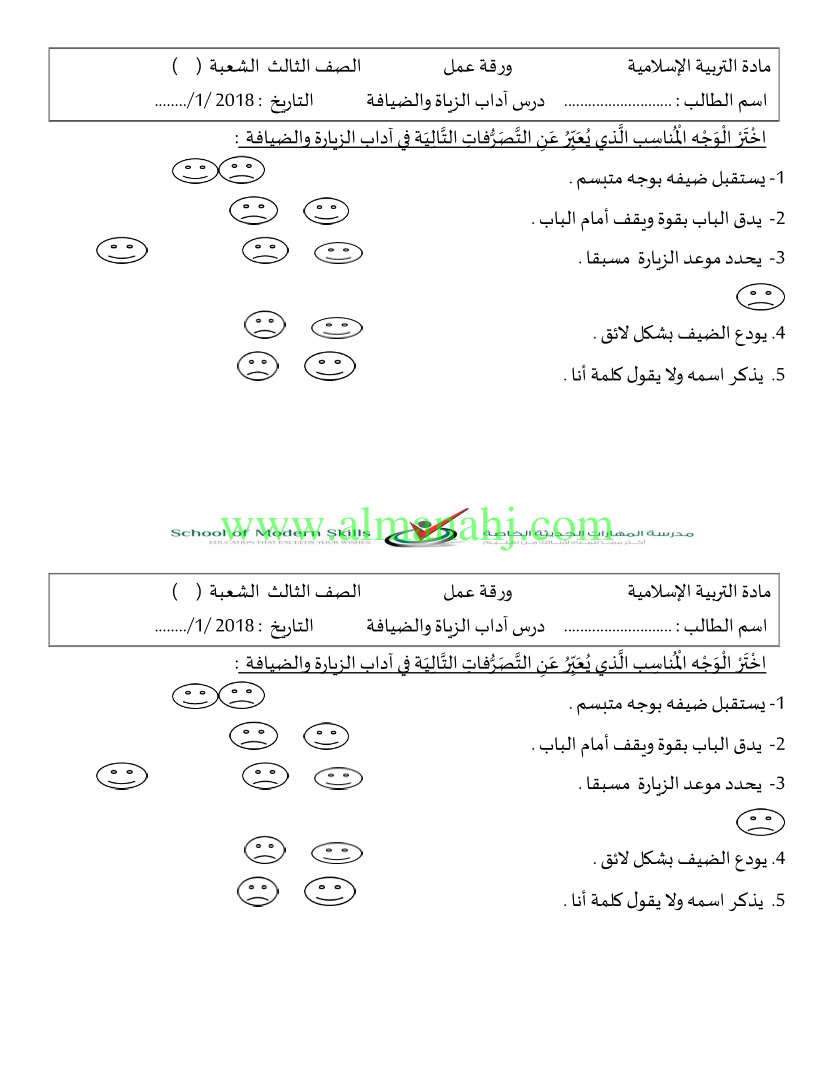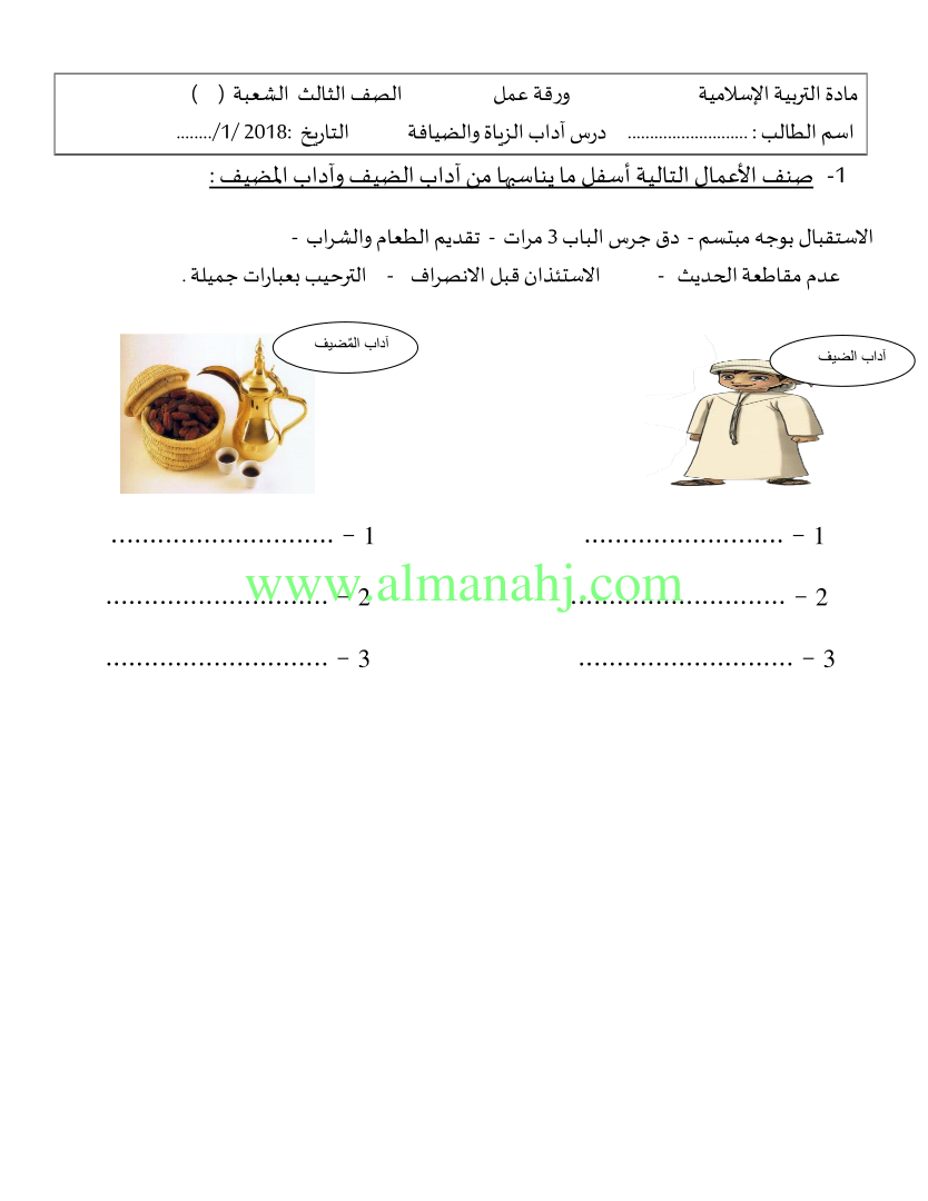 معلومات الملف: الصف الثالث, الفصل الثاني, تربية اسلامية, 2017-2018, درس ادآب الزيارة والضيافة | |||