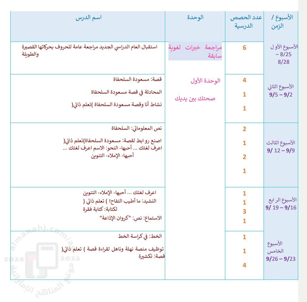 📌 الخطة الدراسية الرسمية المعتمدة للعام الدراسي 2025-2026 | |