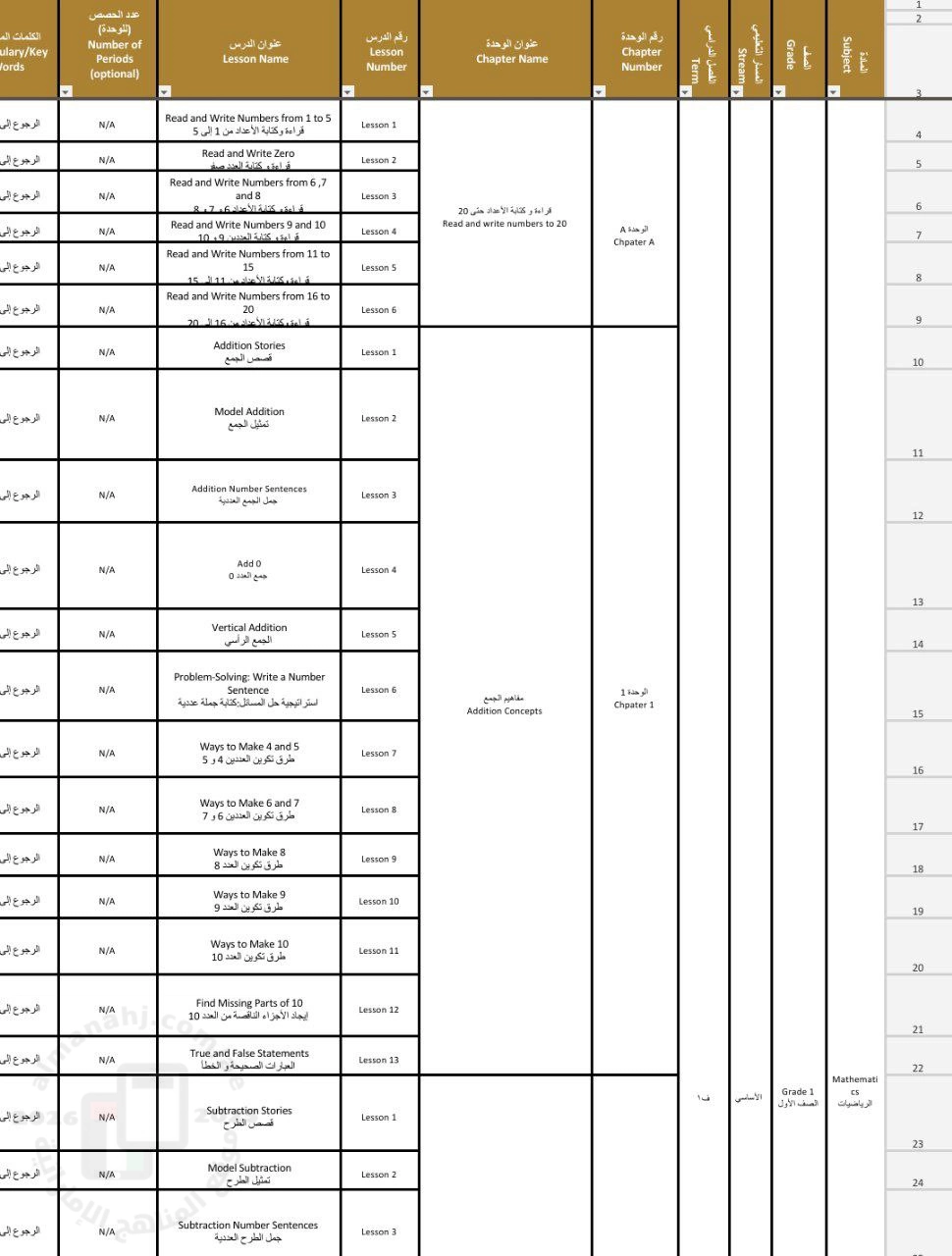 | الخطة الفصلية للدروس المقررة في الفصل الأول | ||