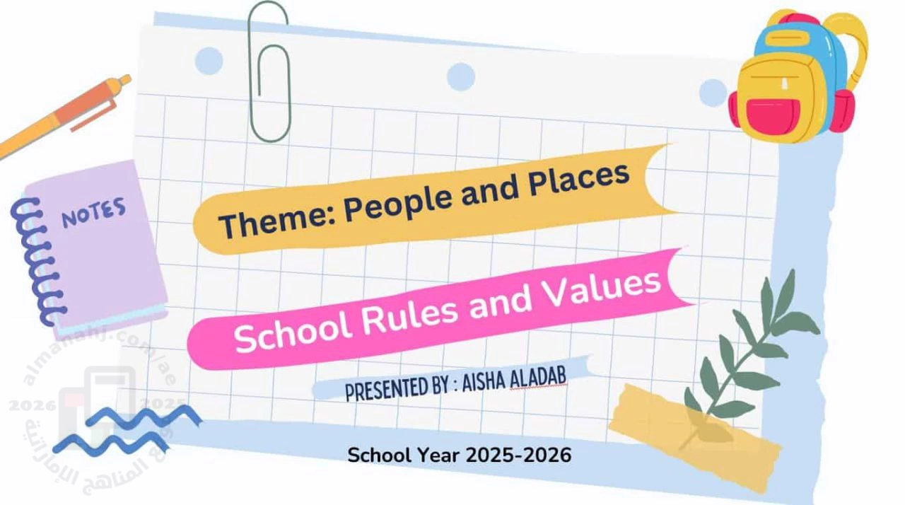 عرض بوربوينت درس School Rules and Values من وحدة People and places | |||