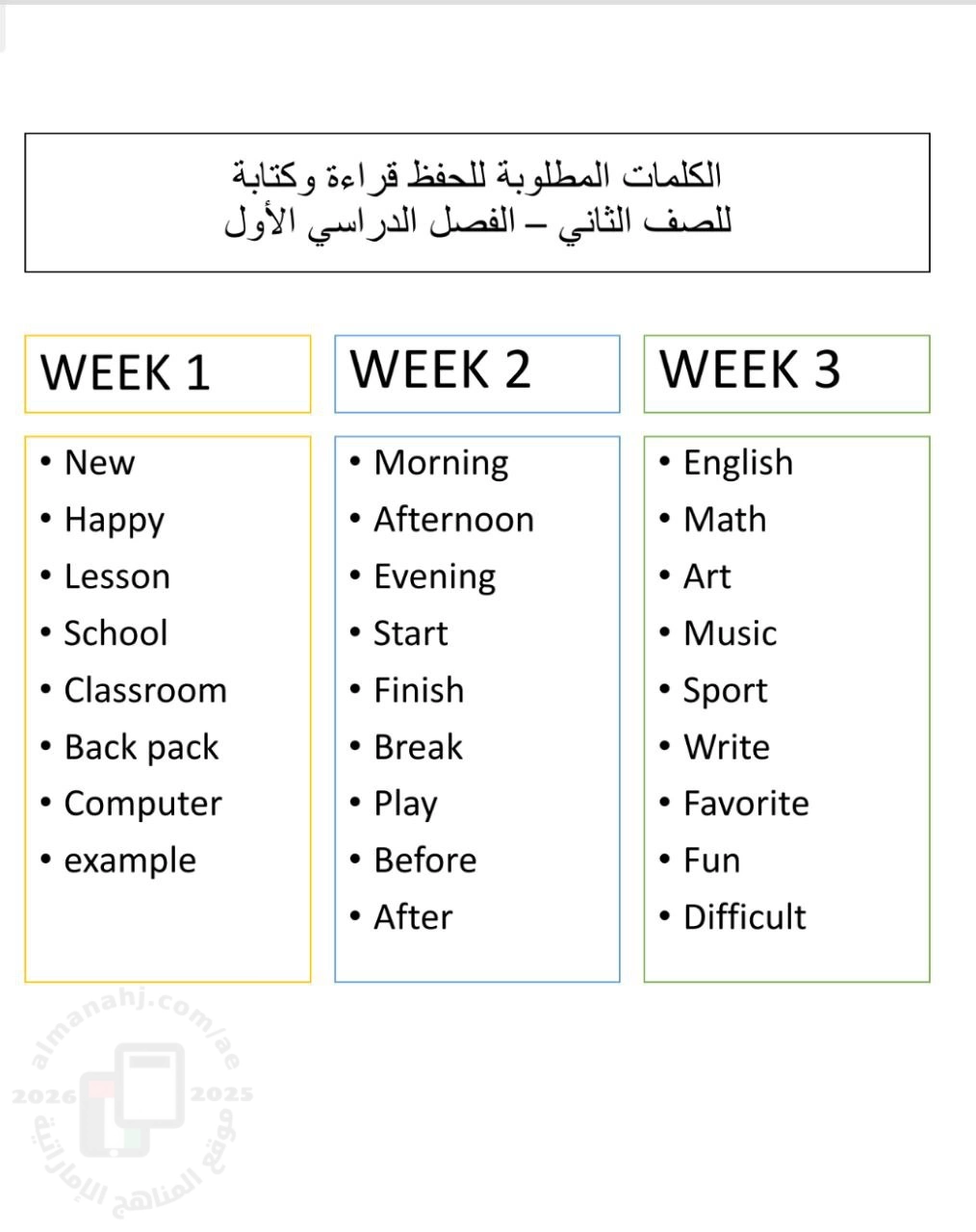 | أكثر خمس كلمات الرائجة لليوم في الصف الثاني | ||