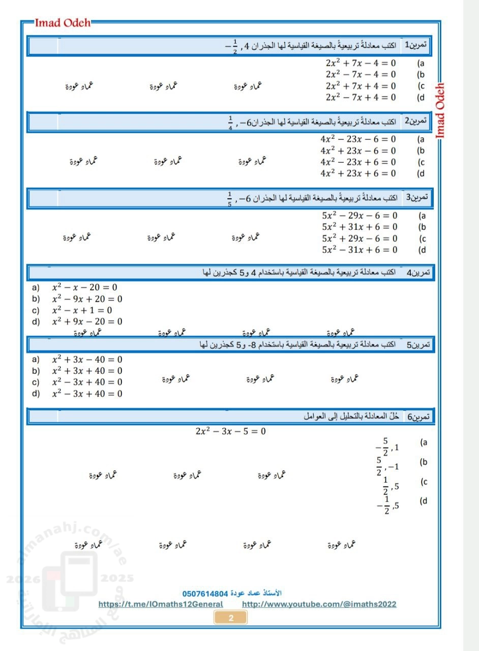 مراجعة الدرس الرابع حل المعادلات التربيعية بالتحليل إلى العوامل من الوحدة الأولى منهج بريدج - إعداد: عماد عودة | ||