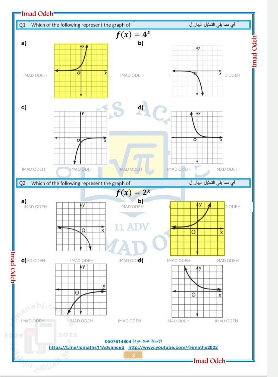 معلومات الملف: مراجعة الدرس الأول رسم الدوال الأسية من الوحدة الخامسة اعتماداً على الاختبارات السابقة منهج ريفيل مع الحل ( اختبر نفسك 1)