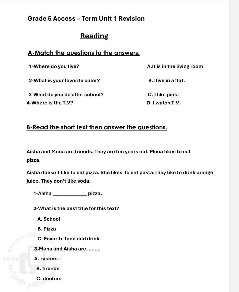 تم إيجاد الملف: أسئلة مراجعة الوحدة الأولى Homes منهج أكسس