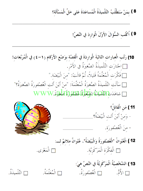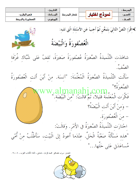 فهم المقروء العصفورة والبيضة | |||