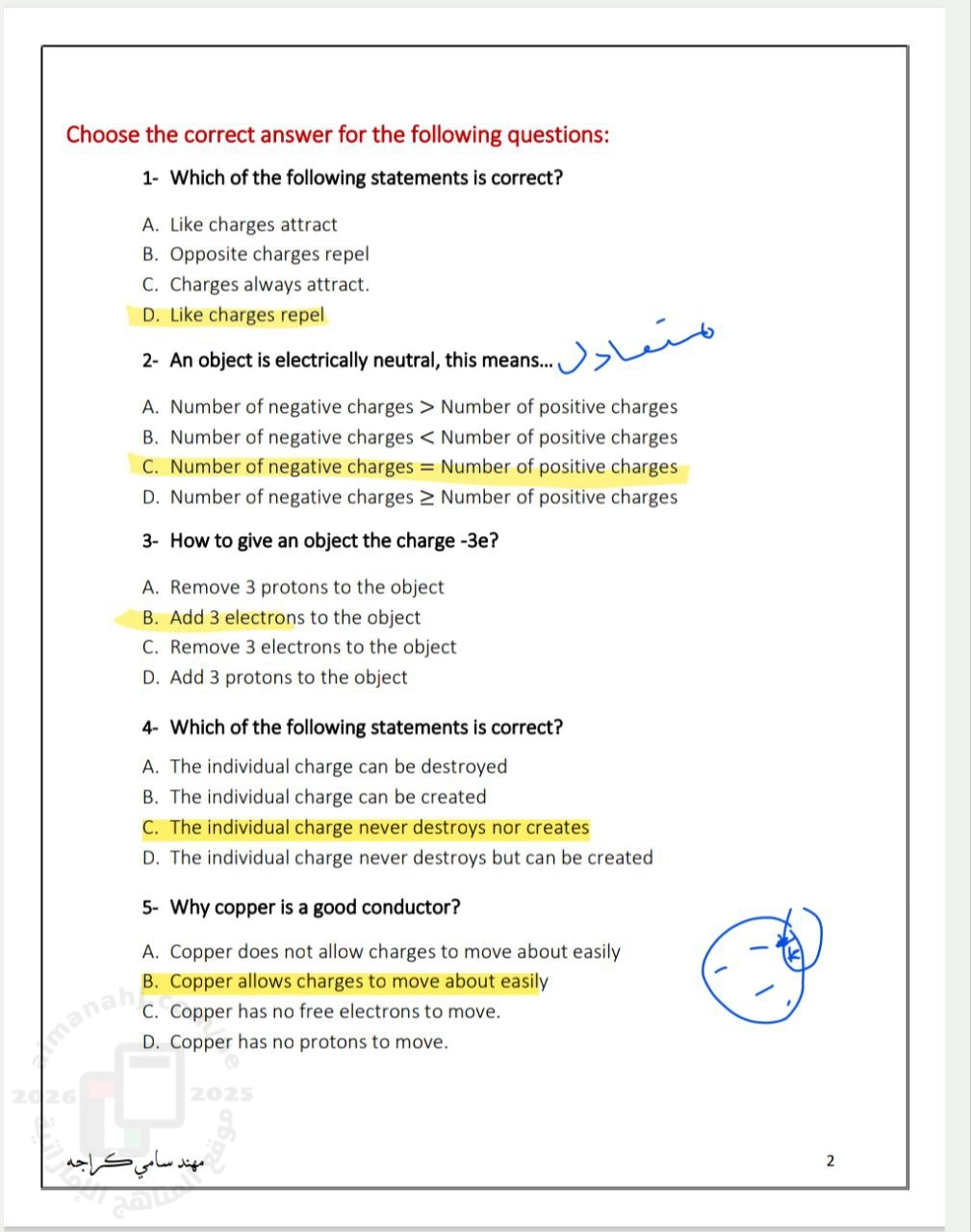 معلومات الملف: مذكرة شاملة وحدات الفصل الأول مع الإجابات و تشمل أسئلة اختيار من متعدد حول : الوحدة الأولى الكهرباء الساكنة الوحدة الثانية الحقول الكهربائية الوحدة الثالثة التيار الكهربائي | ||