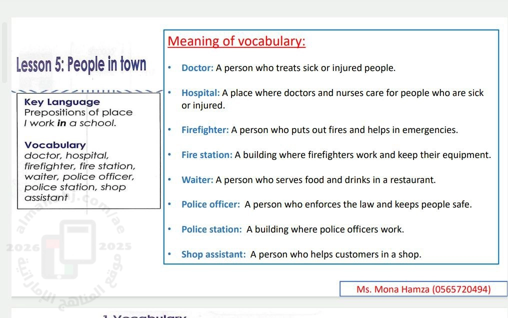 ملف حل الدرس الخامس People in town من الوحدة الثالثة منهج أكسس الجديد - إعداد: Mona Hamza | ||
