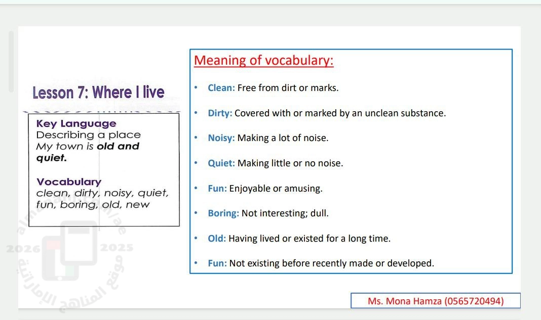 ملف حل الدرس السابع Where I live من الوحدة الثالثة منهج أكسس الجديد - إعداد: Mona Hamza | ||