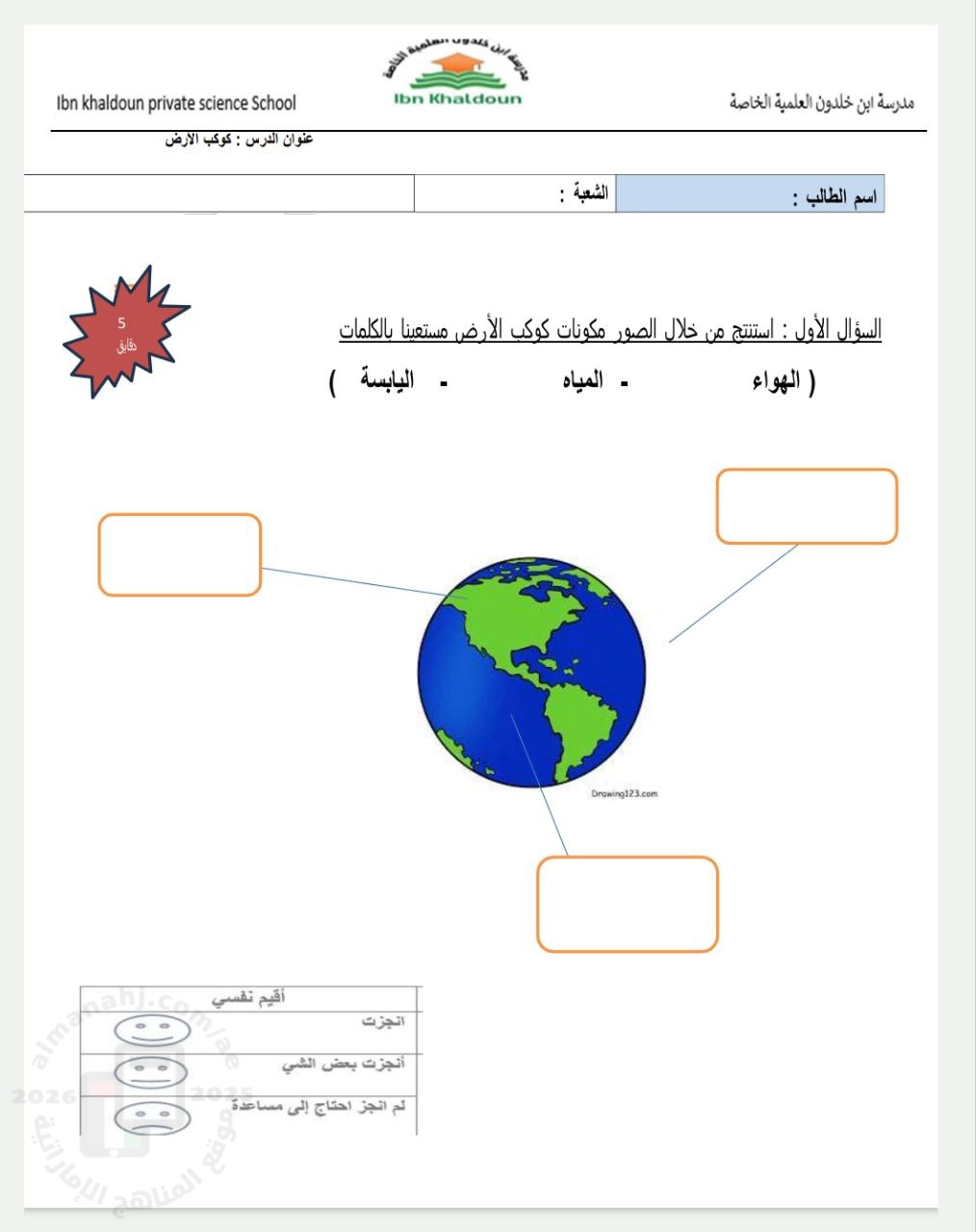 أوراق عمل درس كوكب الأرض - إعداد: مدرسة ابن خلدون العلمية الخاصة | ||