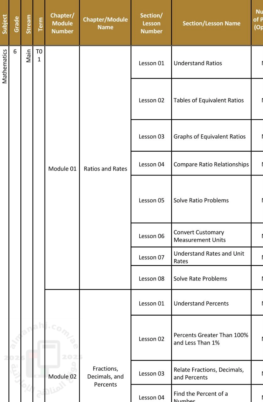 منهج انجليزي الصف السادس رياضيات الفصل الأول