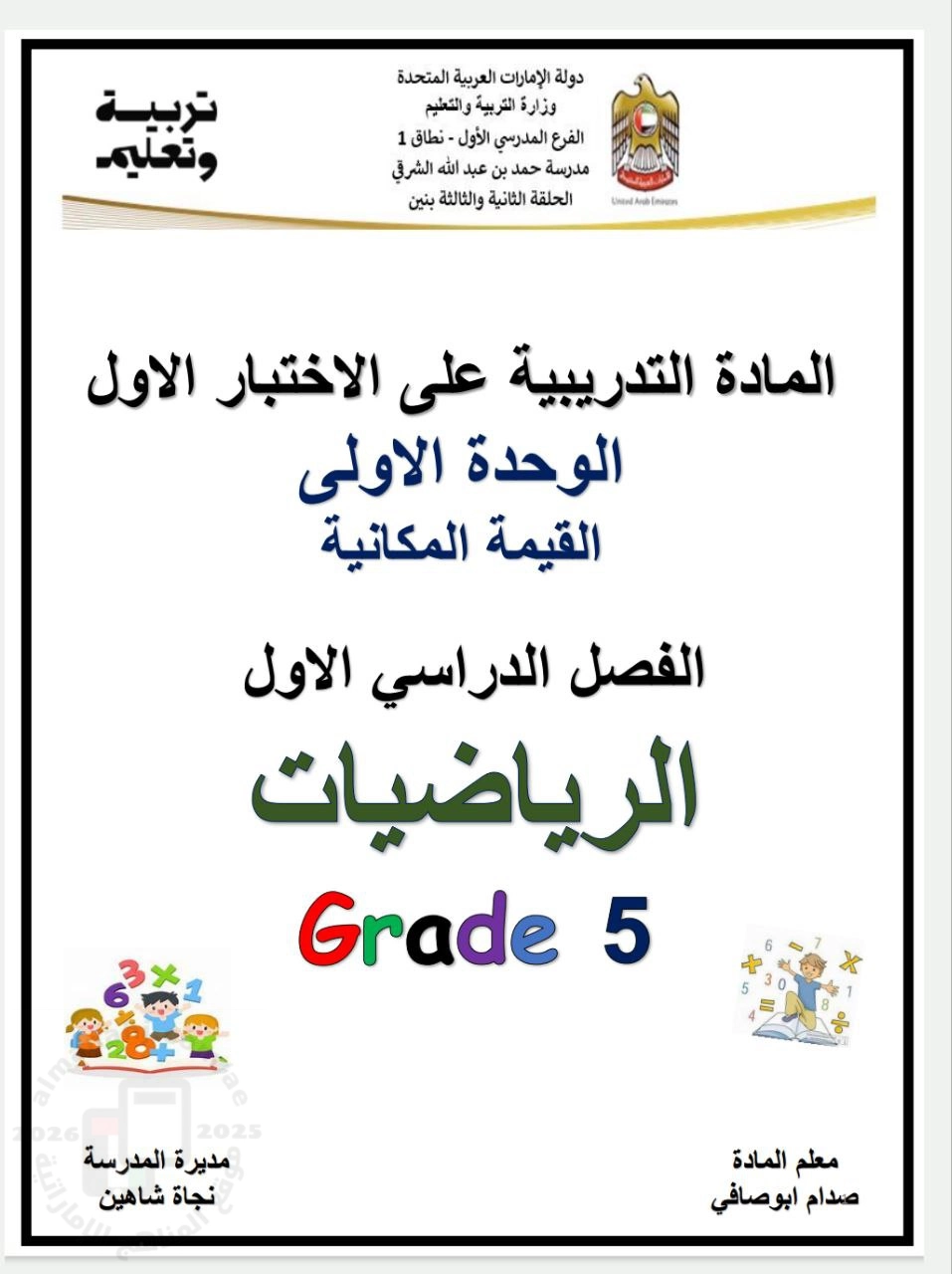 تم إيجاد الملف: المادة التدريبية على الاختبار الأول الوحدة الأولى القيمة المكانية