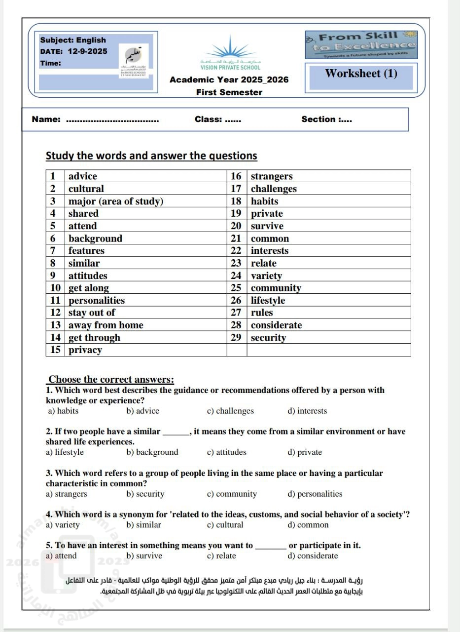 تم إيجاد الملف: ورقة عمل 1 اختر الجواب الصحيح