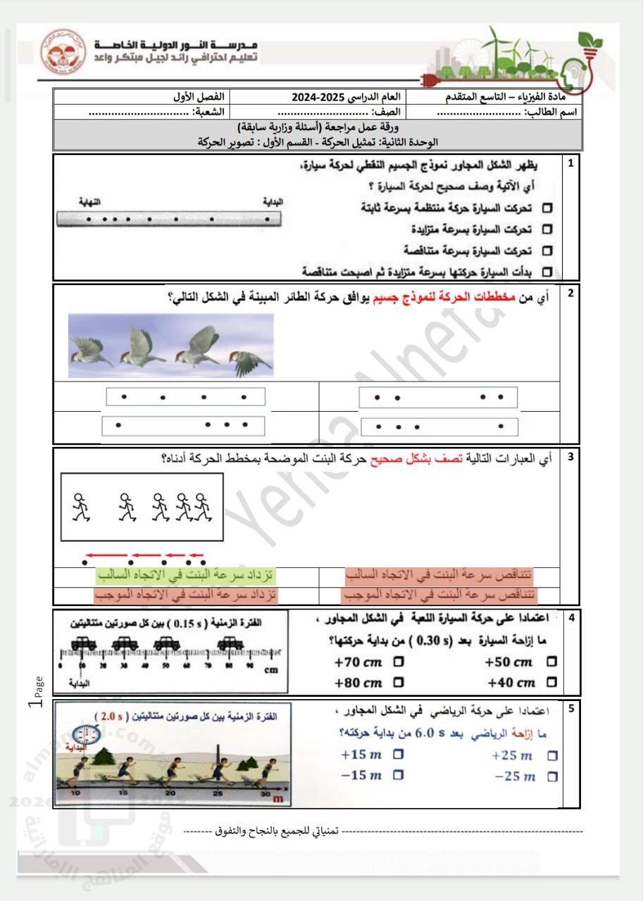 تم إيجاد الملف: ورقة عمل مراجعة الدرس الأول تصوير الحركة من الوحدة الثانية تمثيل الحركة