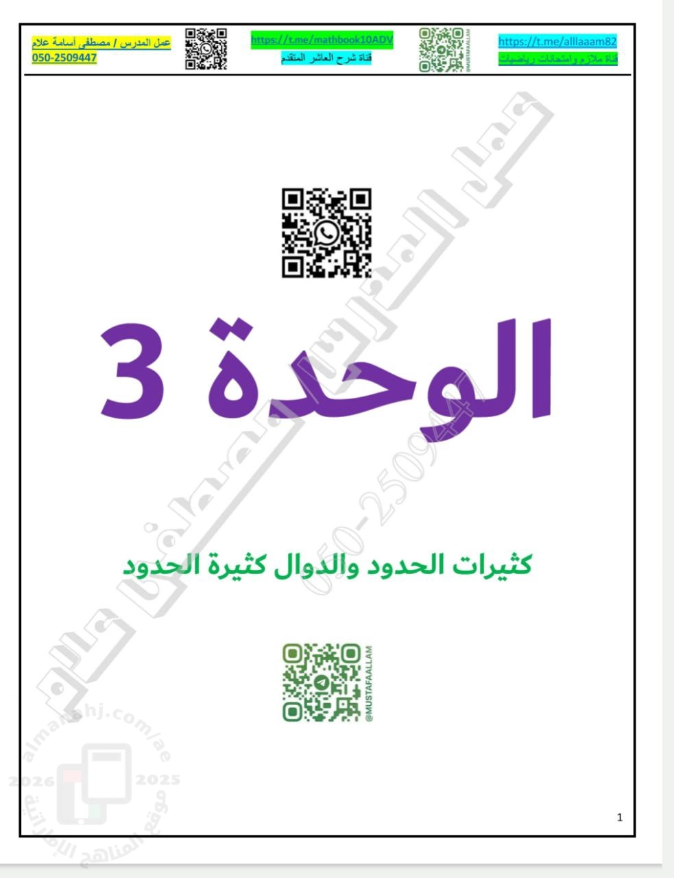 رابط تحميل وعرض ( حل أوراق عمل الوحدة الثالثة كثيرات الحدود و الدوال كثيرة الحدود ) | |||