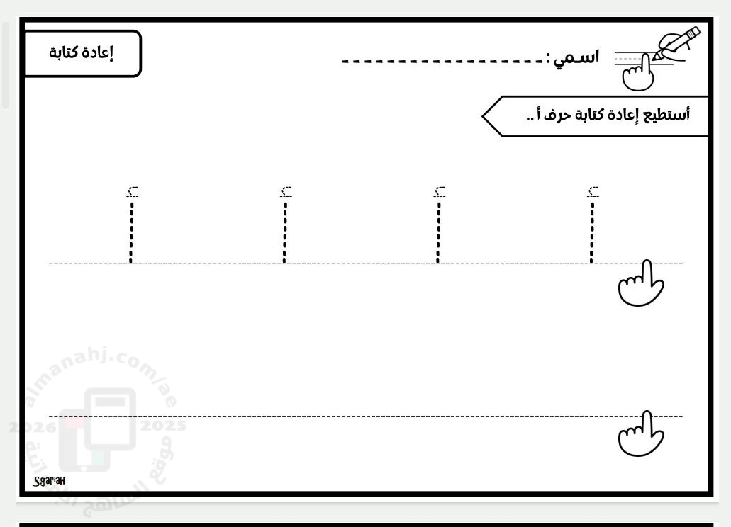 3. KG1, لغة عربية, أنشطة Handwriting practice تتبع الخطوط المنقطة