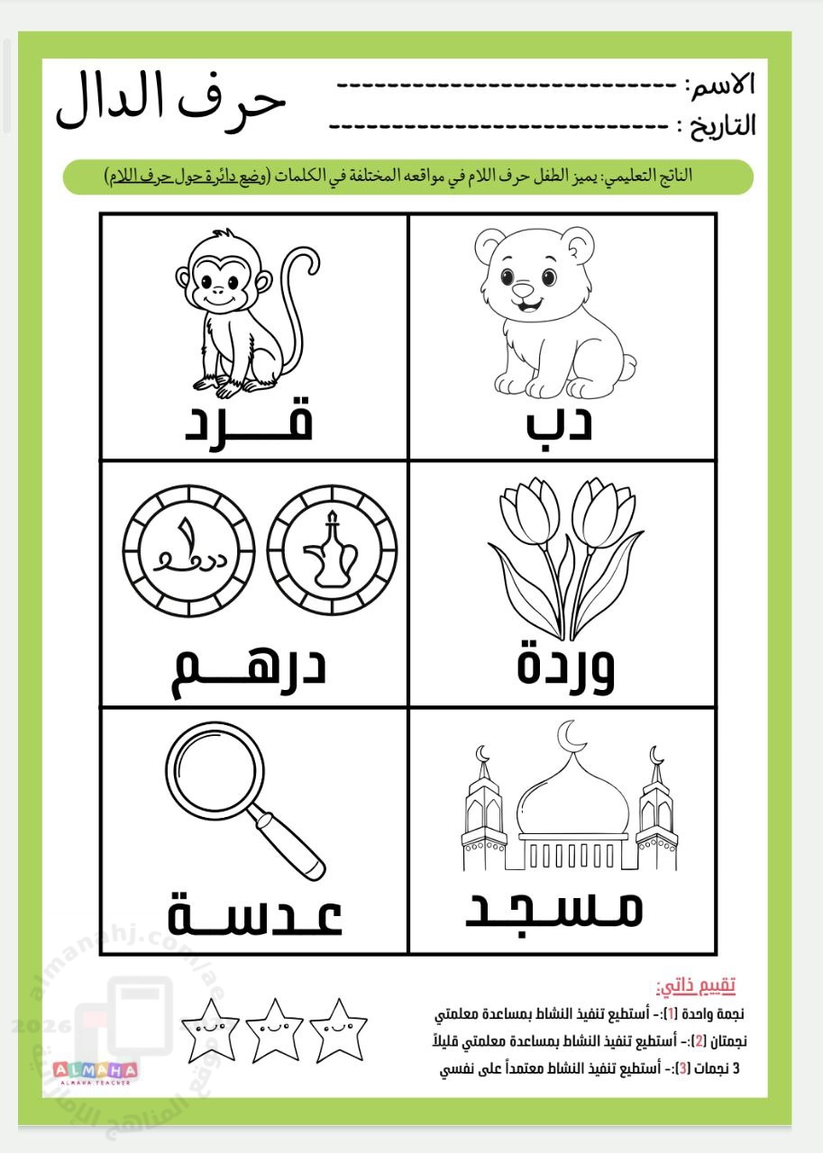 11. KG1, لغة عربية, أنشطة حرف الدال في المواقع المختلفة من الكلمة