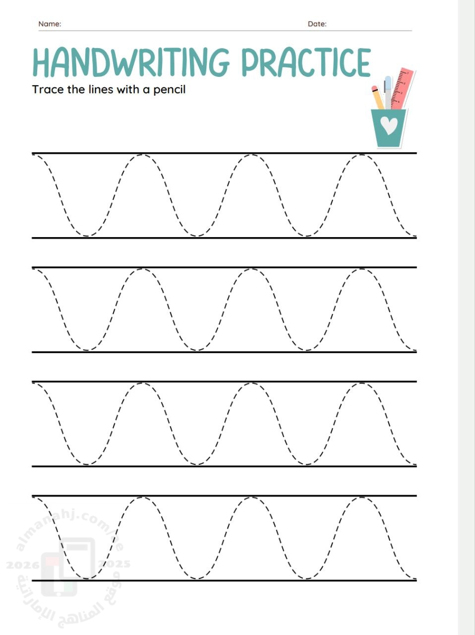 4. KG1, لغة عربية, أنشطة Handwriting practice تتبع الخطوط المنقطة