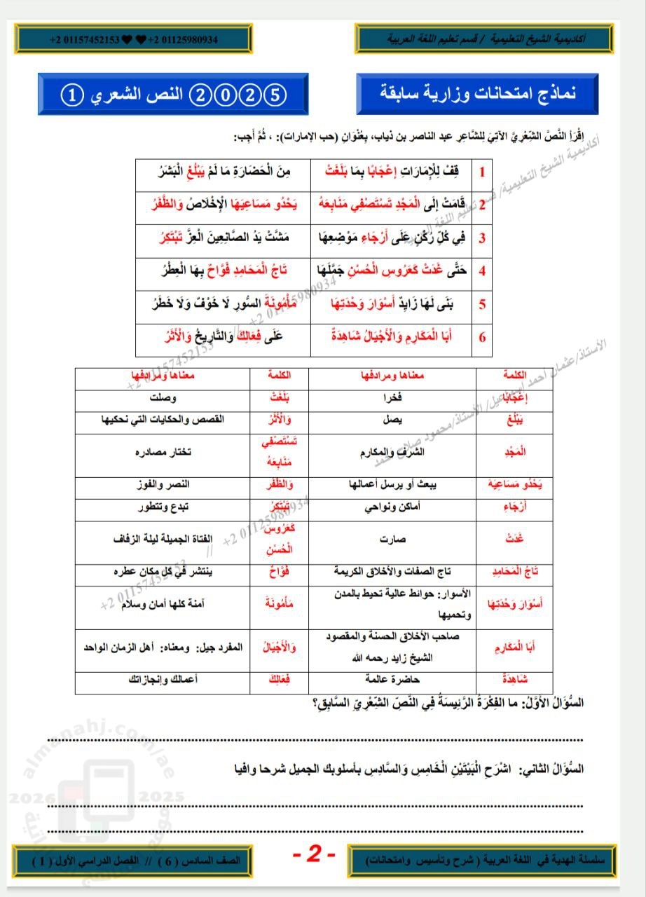 | بنك امتحانات وزارية سابقة في النصوص الشعرية - إعداد: أكاديمية الشيخ التعليمية | ||