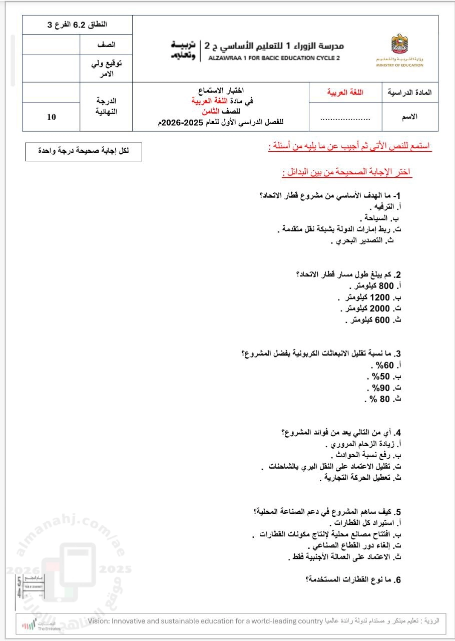 تنويه: المناهج الإماراتية هو موقع مجاني وغير رسمي ولا يتطلب اشتراك لتحميل الملفات، لذلك يرجى عدم دفع أي مبلغ أو الاشتراك من أجل تحميل الملفات. | |