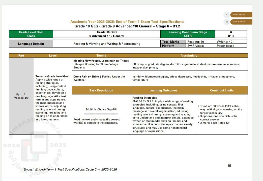 | أنت هنا: موقع المناهج ⇦ المناهج الإماراتية ⇦ الصف العاشر ⇦ لغة انجليزية ⇦ الفصل الأول ⇦ اختبارات |