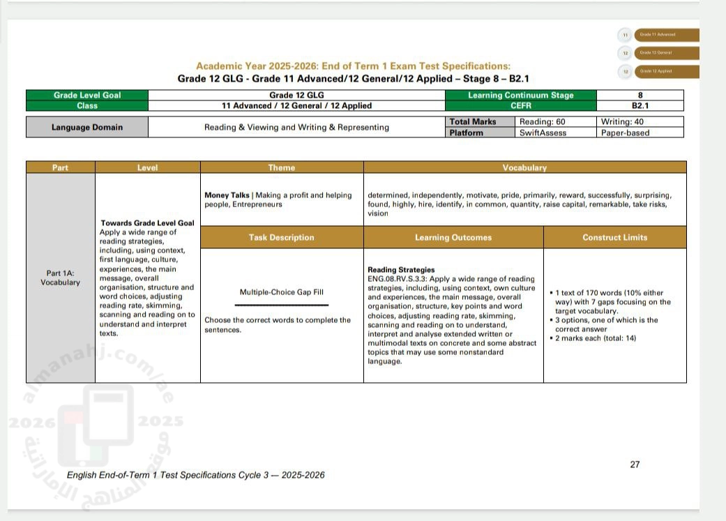أحدث ملفات الصف الثاني عشر, برنامج تمكين, الفصل الأول |