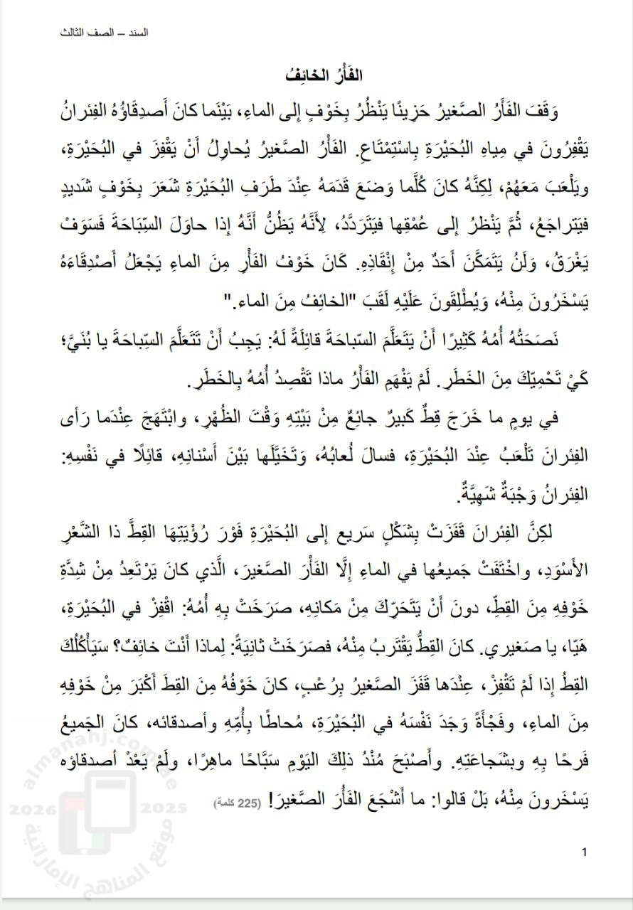 معلومات الملف: أسئلة اختبار فهم المقروء النص السردي - نص الفأر الخائف - بدون الحل