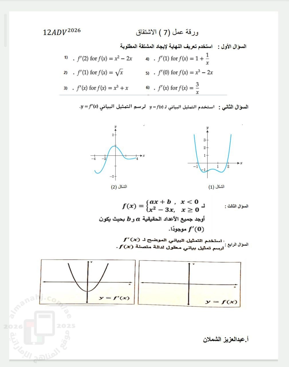 معلومات الملف: ورقة عمل حول درس الاشتقاق بدون الحل