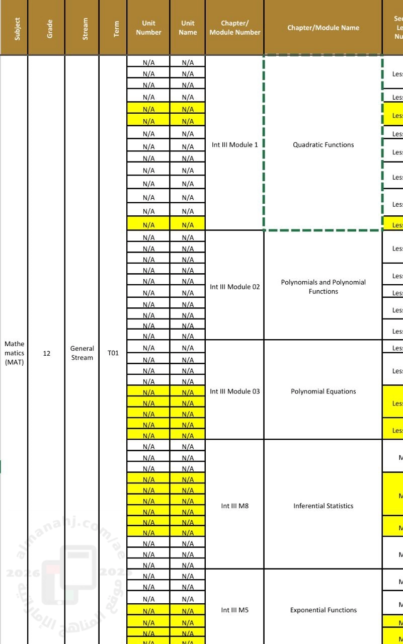 الخطة الفصلية للدروس المقررة في الفصل منهج ريفيل, الصف الثاني عشر العام, رياضيات, الفصل الأول, 2025-2026, منهج انجليزي - المناهج الإماراتية