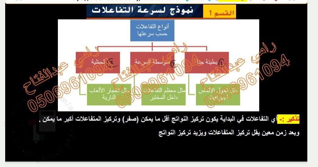 حل تدريبات القسم الأول نموذج لسرعة التفاعلات من الوحدة الثانية - إعداد: رامي عبد الفتاح | ||
