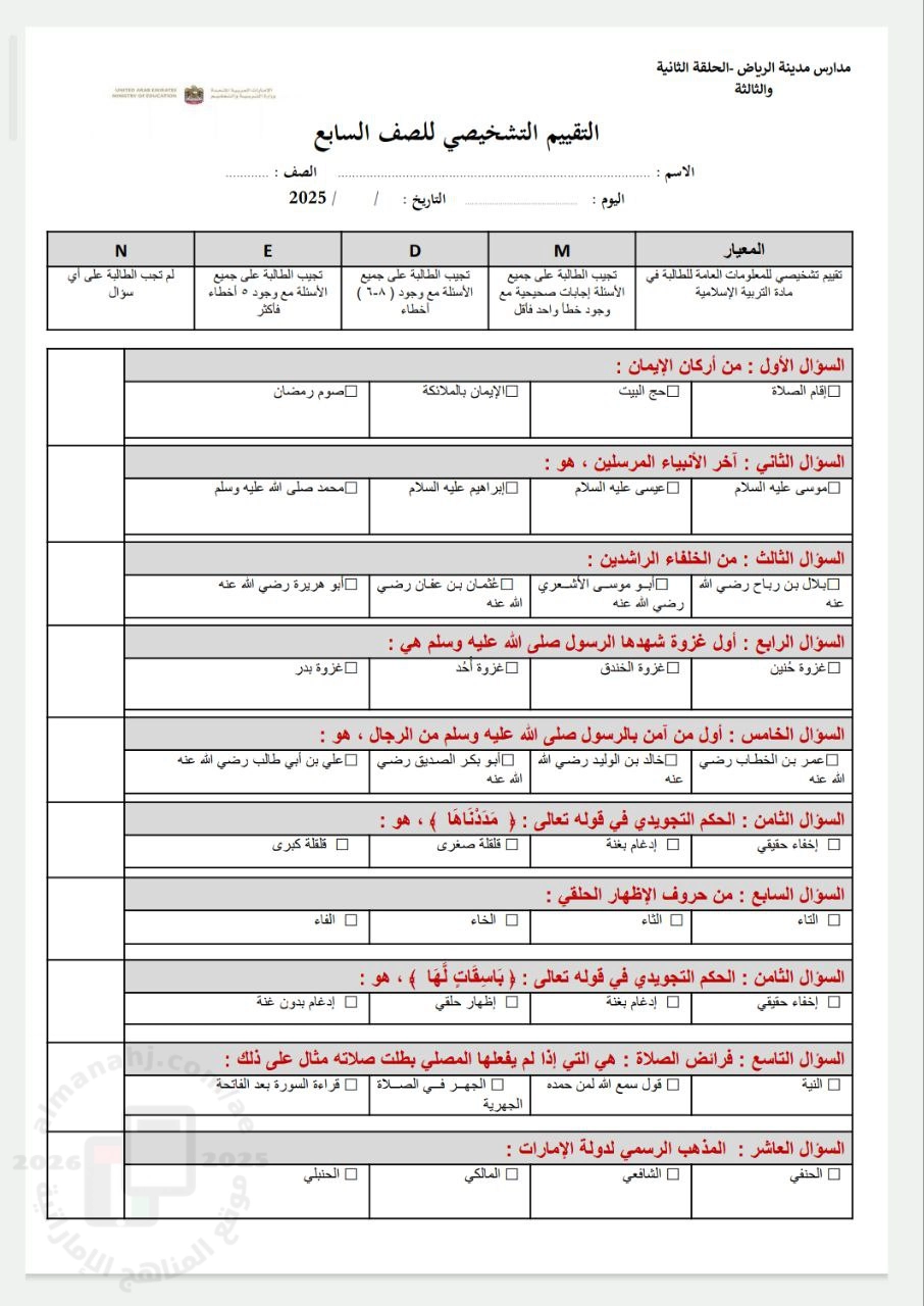 | أنت هنا: موقع المناهج ⇦ المناهج الإماراتية ⇦ الصف السابع ⇦ تربية اسلامية ⇦ الفصل الأول ⇦ اختبارات |