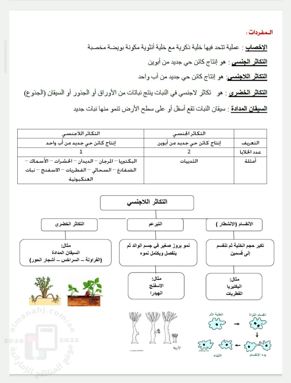 | ملخص أول درسين التكاثر ودورة حياة النبات من الوحدة الثانية | ||