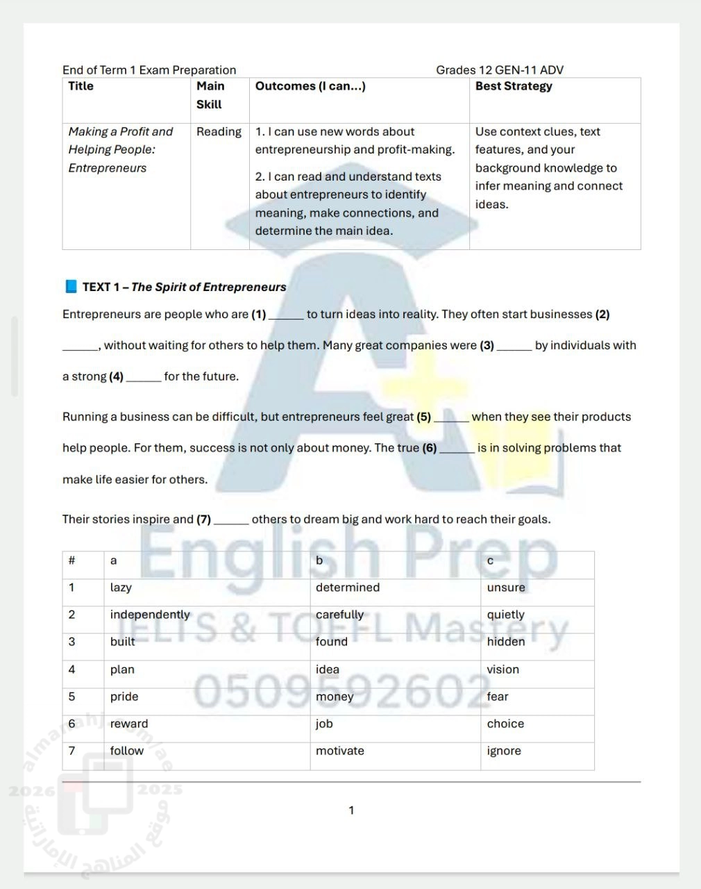 أحدث ملفات الصف الثاني عشر, برنامج تمكين, الفصل الأول |