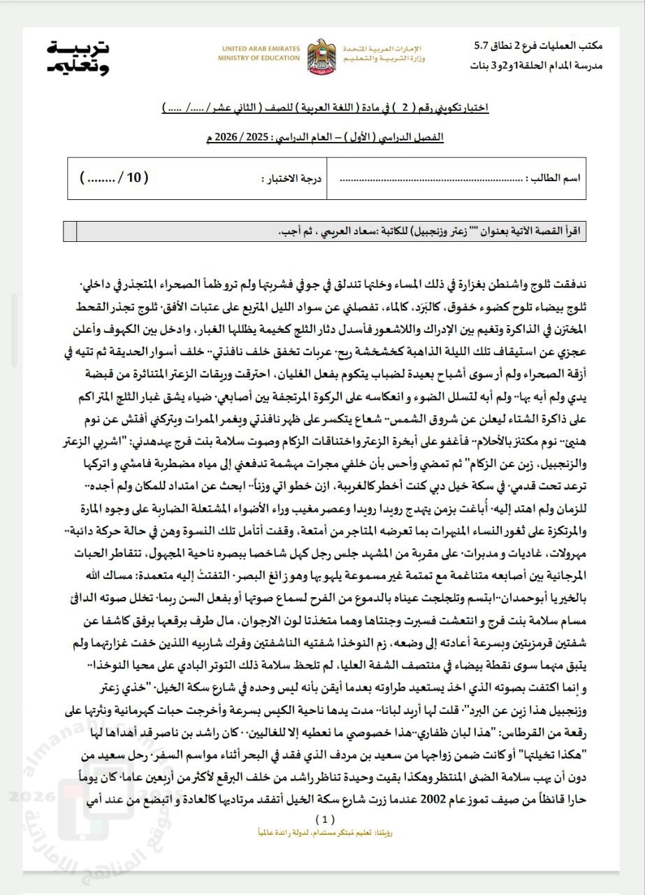 أهلاً بكم جميعاً طلاباً ومدرسين وأهالي طلبة ومهتمين، في قسم دولة الإمارات ، نحن الآن في الفصل الأول من العام الدراسي 2025/2026 وتاريخ اليوم 2025/10/08 م | |