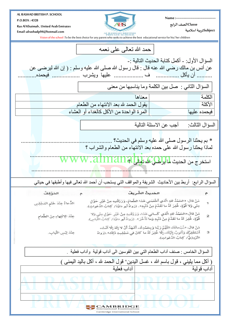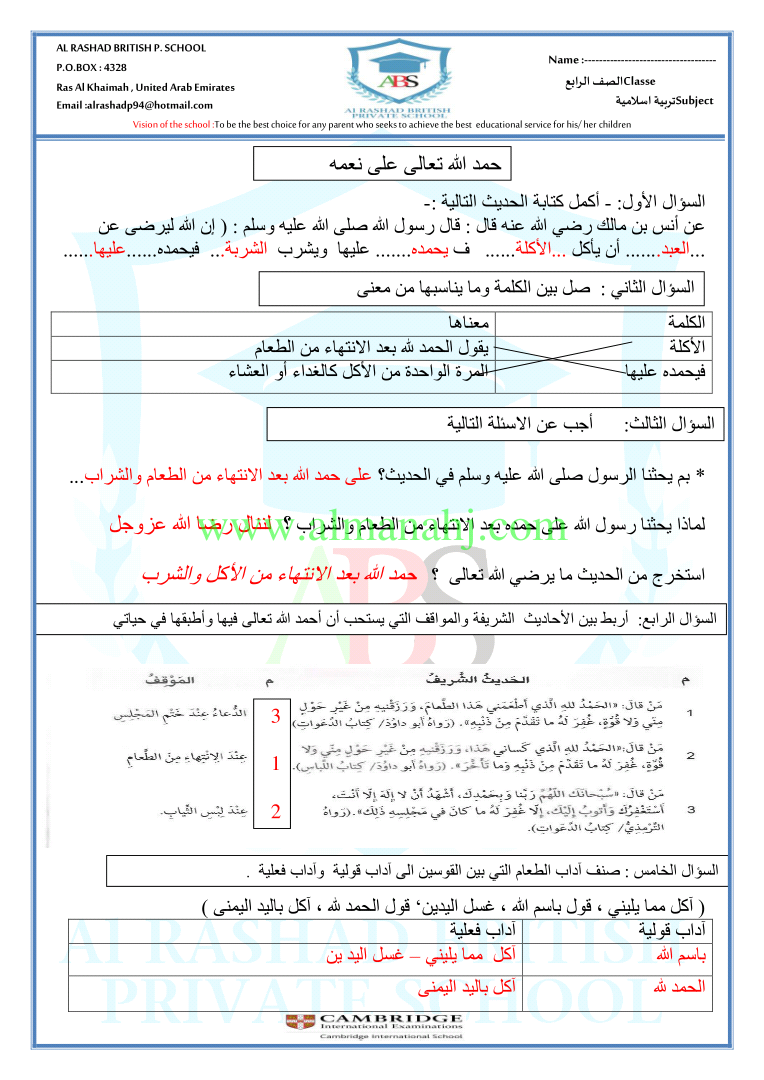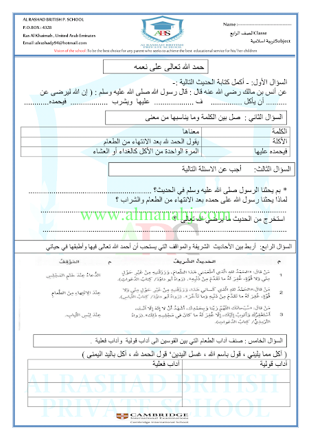 معلومات الملف: الصف الرابع, الفصل الثاني, تربية اسلامية, 2017-2018, حمد الله تعالى على نعمه | |||
