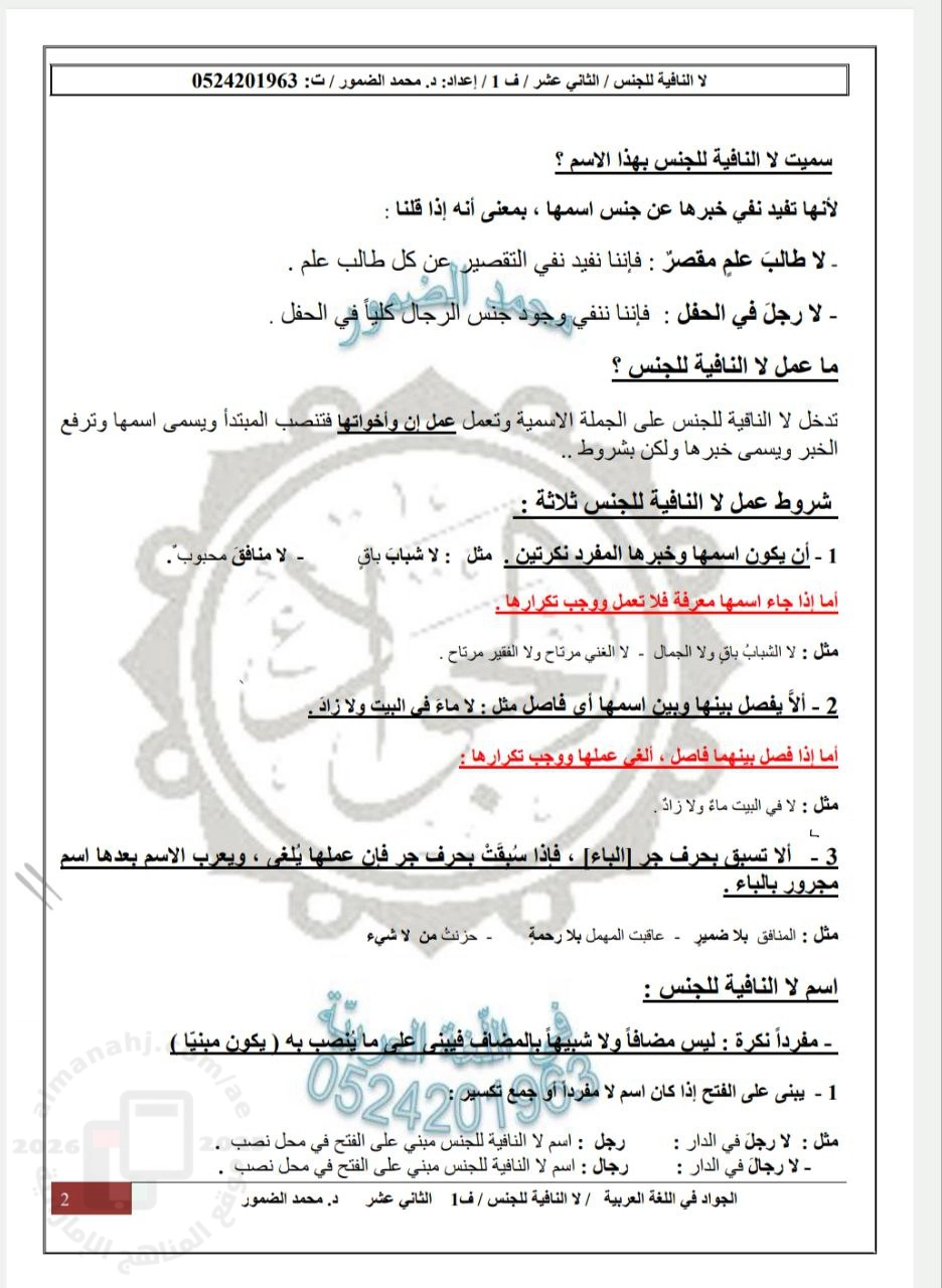 تم إيجاد الملف: ملخص درس لا النافية للجنس