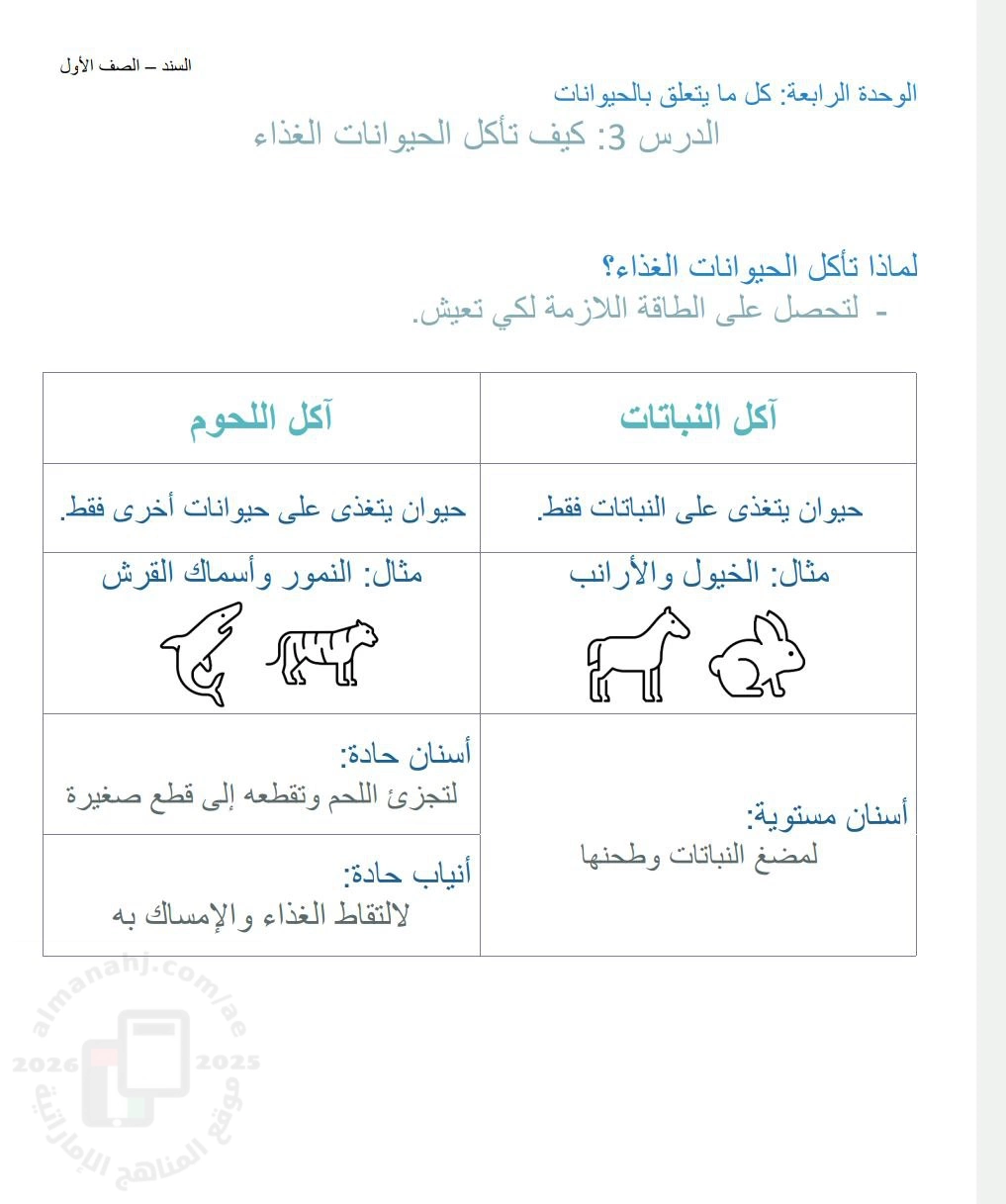 معلومات الملف: حل ورقة عمل الدرس الثالث كيف تأكل الحيوانات الغذاء من الوحدة الرابعة كل ما يتعلق بالحيوانات
