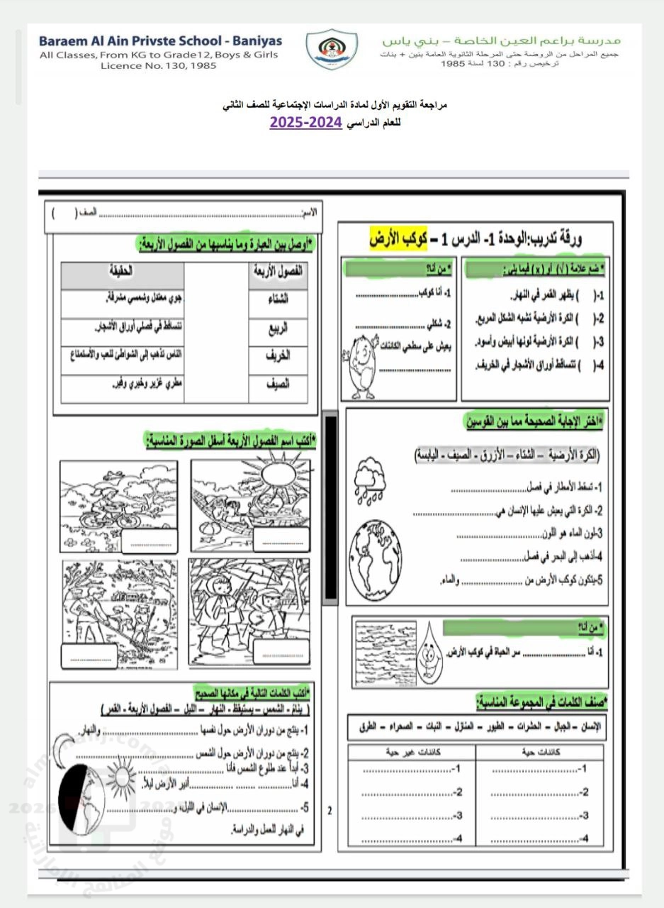 تم إيجاد الملف: تدريبات ومراجعة التقويم الأول بدون الحل