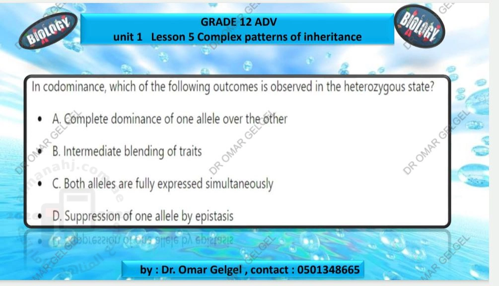 أسئلة مراجعة الدرس الخامس Complex patterns of inheritance من الوحدة الأولى - إعداد: Omar Gelgel