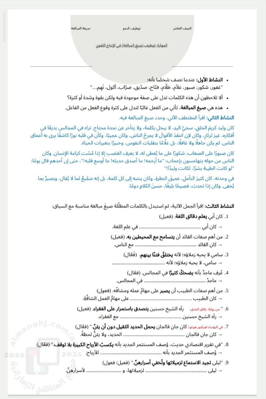 معلومات الملف: توظيف صيغ المبالغة في الإنتاج اللغوي