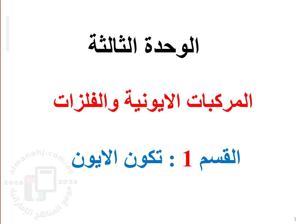 عرض بوربوينت القسم الأول تكون الأيون من الوحدة الثالثة | |||