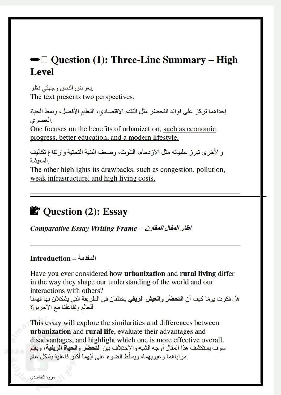 حل أسئلة اختبار كتابي Urbanization تضخم المدن المسار المتقدم - إعداد: Marwa Alnakshbandi | ||