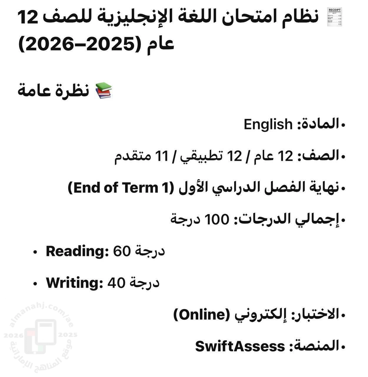 معلومات الملف: نظرة عامة على امتحان اللغة الإنجليزية للصف الثاني عشر (2025-2026) | ||